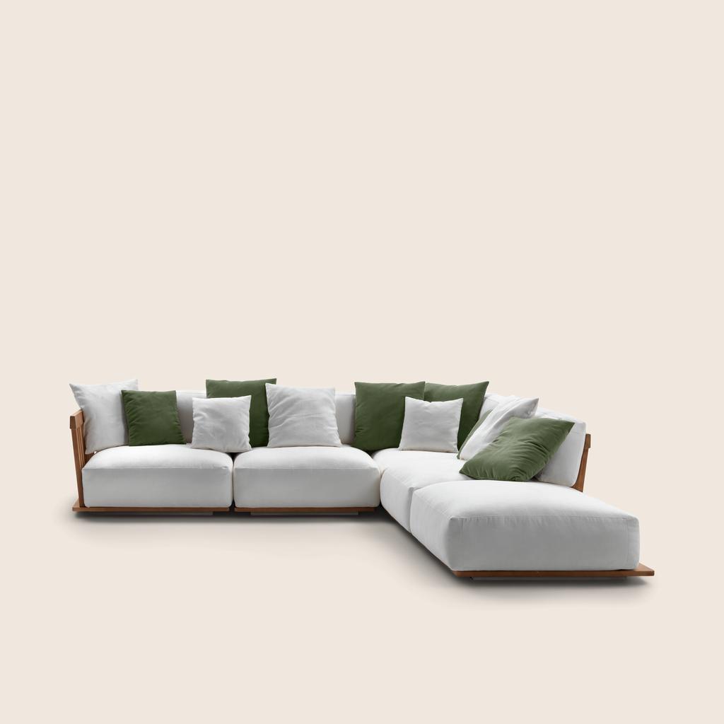 Flexform’s outdoor sectional sofas are composed of modular upholstered elements that can be freely combined to shape personalized open-air living areas—true “outdoor rooms” defined by comfort, elegance, and flexibility.