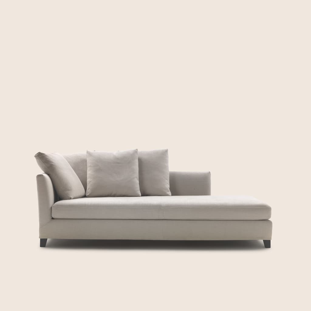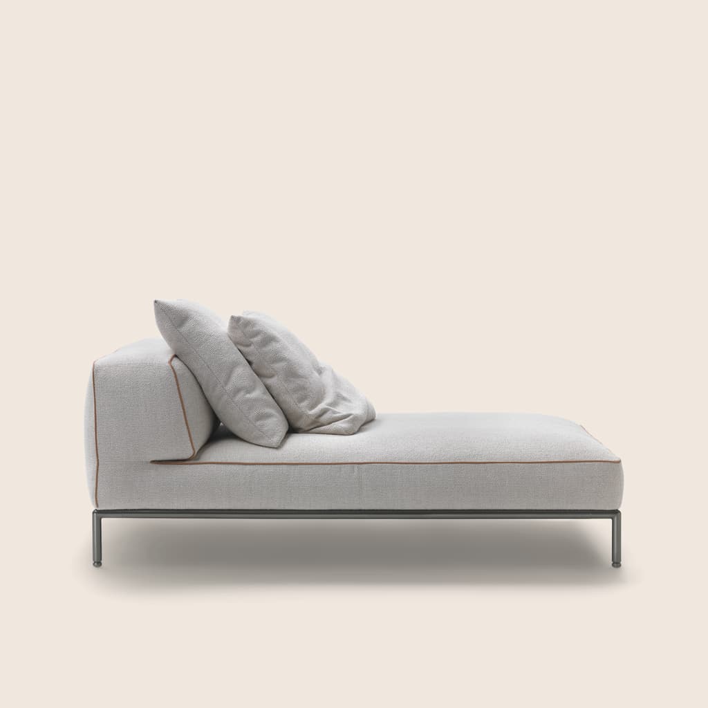 Our custom collections let you choose different colors, number of seats and type of material. With or without arms, fixed or adjustable, every chaise longue comes in a wide range of styles – from modern and contemporary to more classic interpretations – whether the space has more compact proportions or larger, open-plan interiors. Other options include tufted or smooth cushions, with coordinated poufs and sofas to complete the ensemble.