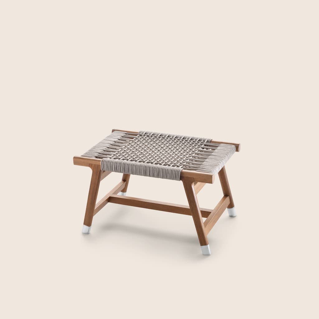 Whether featuring a wooden base, woven structure or technical fabric cover, every pouf in the collection expresses a unique interpretation of flexible outdoor use. These classic yet modern products are part of a broader catalog that includes stools, cushions, side tables, and coordinated accessories – designed to enhance exterior environments with thoughtful style and functionality.
