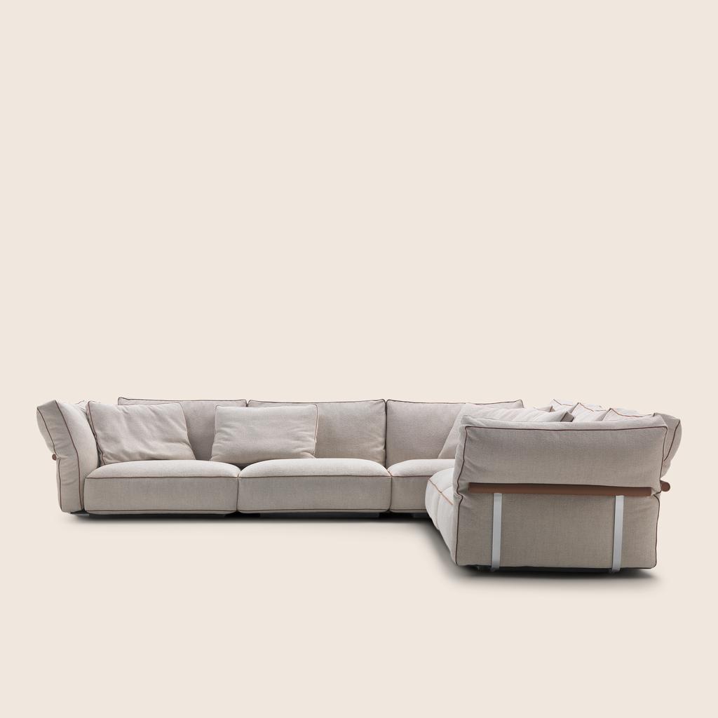 La libertad de personalización alcanza todos los detalles: asiento lineal o envolvente, con o sin respaldo móvil, brazo bajo o alto, reposabrazos delgados o generosos, así como una gran variedad de cojines decorativos y funcionales. Todo ello contribuye a un nuevo concepto de comodidad —más envolvente, más intuitiva— donde el diseño no solo se contempla, sino que también se vive.